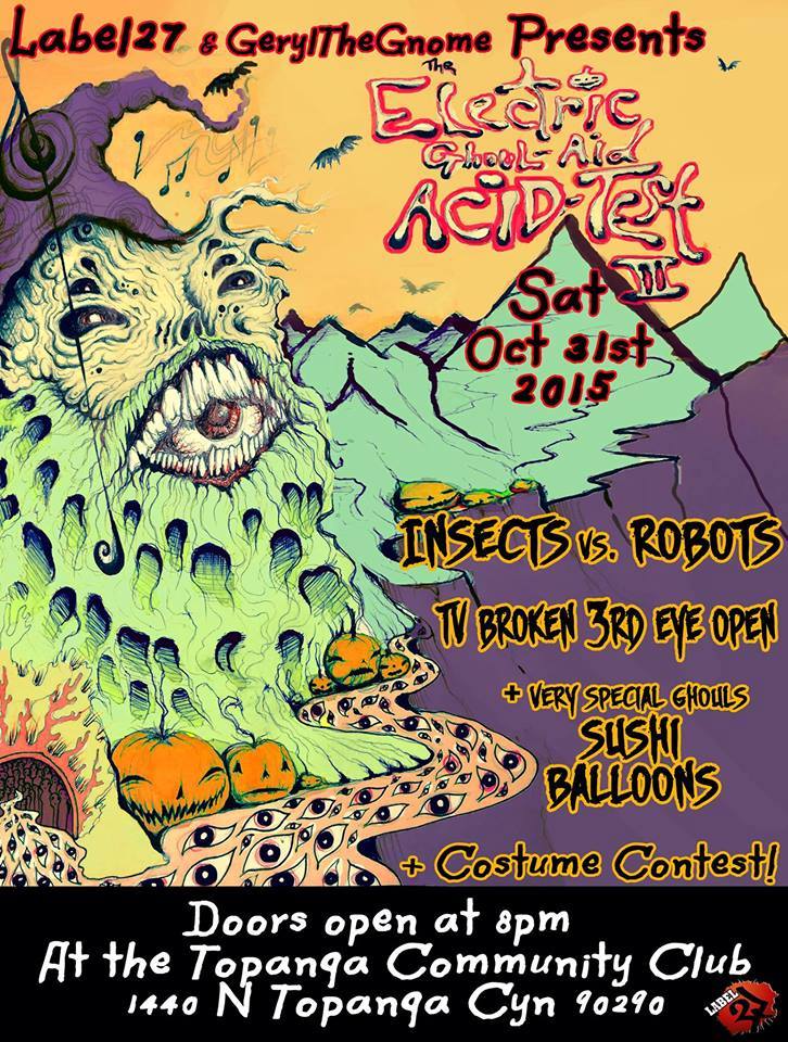 For the 5th Electric Gouhl Aid Acid test Tv broken joined brothers Insects Vs Robots and friend “sushi Balloons” for a Halloween adventure! The band the “Sushi Ballons” was actually an alias for Lucas Nelson and the Promise of the real! With these three powerhouses the vibes were high and the gohol aid acid test was in full effect!!